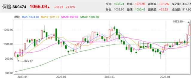 3.保险版块股价回升,5个月涨幅超30%,近两日涨幅连续超上证综指!
