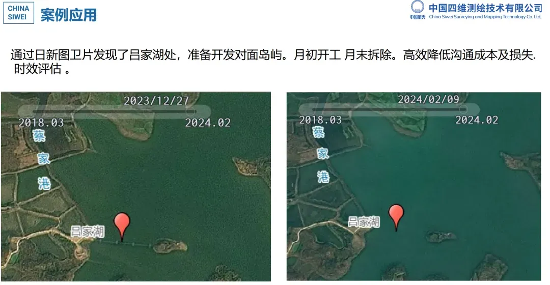 日新图的特点在于“新”,更新速度快,优势在于可以在大量的历史数据中,选取不同时期的影像进行对比查看,比如下图中的查违建,老用户亲测:2米分辨率已经足够完成日常工作了😄
