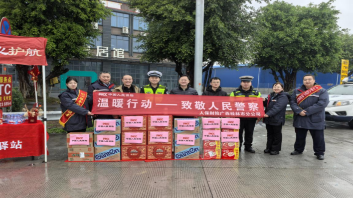 (在广西,人保财险春节期间开展“暖医、暖警、暖企、暖民”行动,向平凡而伟大的守护者致敬。)