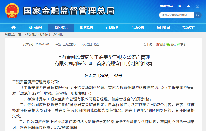 徐旻华获批出任工银安盛资管副总经理、首席合规官