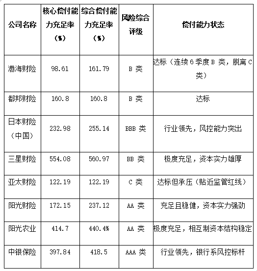 2005年成立的阳光财险、阳光农业、中银保险、渤海财险、都邦财险、日本财险(中国)、三星财险、亚太财险八家财产险公司,哪家综合实力更强?