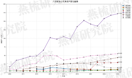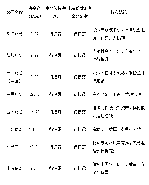 八家公司净资产规模呈现极端分化特征,与企业资本实力、经营模式、股权背景及发展状况高度挂钩,资产负债率、未决赔款准备金充足率暂未披露,具体指标及核心结论如下表所示: