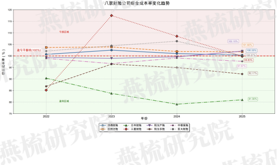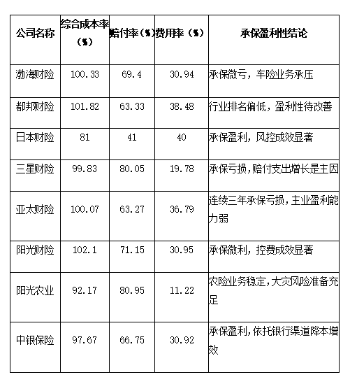 综合成本率:100% 为盈亏分界线,阵营泾渭分明