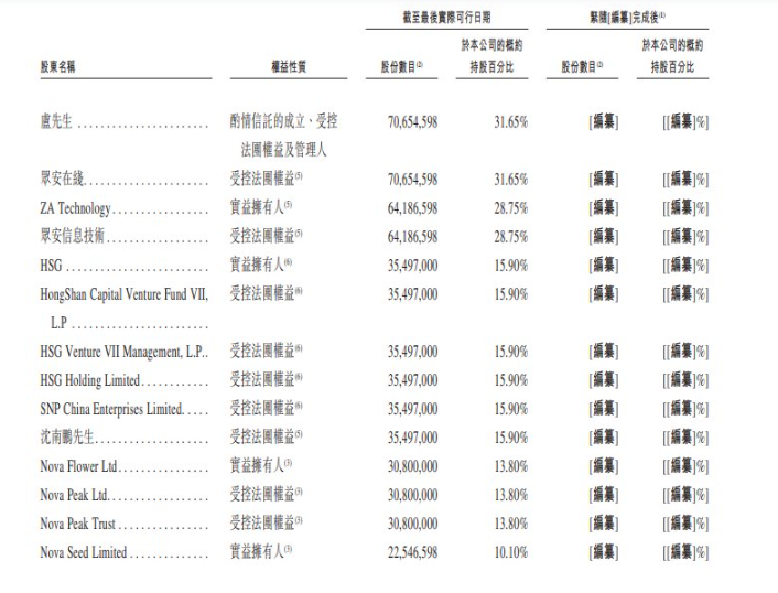 于最后实际可行日期,卢旻先生及众安在线各自被视为拥有70,654,598股股份,相当于公司31.65%的股权。其他股东概无持有公司超过16.00%的股权。上市后卢旻先生及众安在线仍为公司的最大股东。