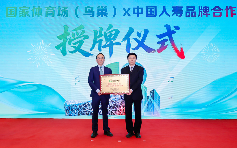 图:国家体育场(鸟巢)×中国人寿品牌合作授牌仪式