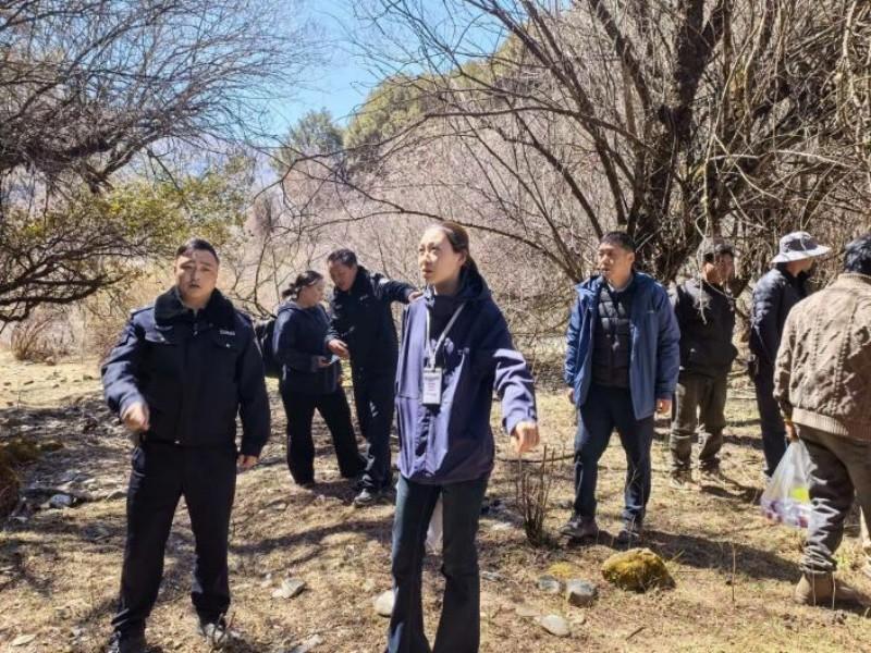 图 1:中华财险巴塘支公司联合警方在措普沟开展野生动物致害政府救助责任保险勘察工作